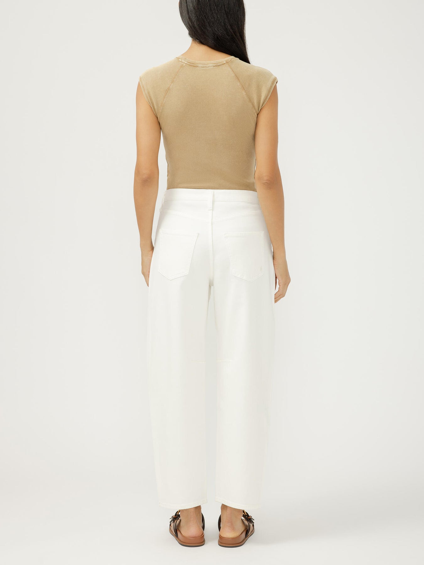 Modern high rise jean from SILVER with on trend slim barrel leg. Slouchy fit with slim leg. Great give and stretch fabric provides both comfort and structure. Dress them up or down. Modern summer jean! Ecru colour (not white)